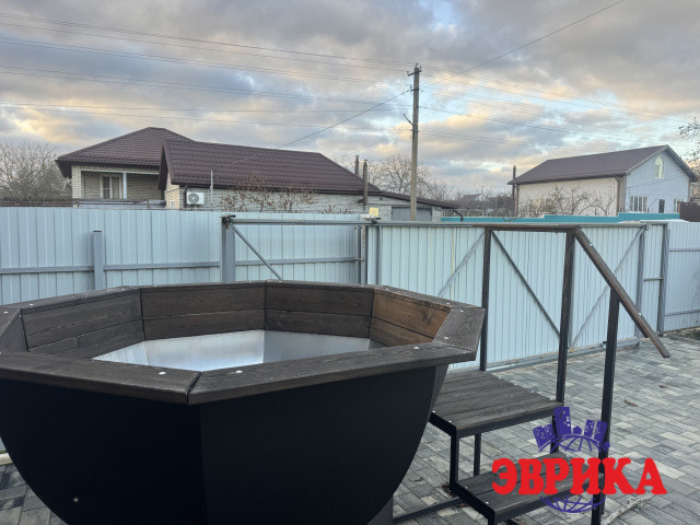 ☑️Просторная зона отдыха возле бани оснащена горячим бассейном и местом для барбекю.