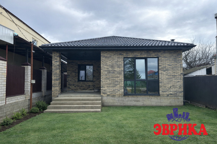 ✅ дом построен из блока, облицован кирпичом, дополнительно утеплён пенопластом; крыша — металлочерепица;